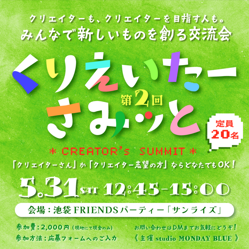 わたしたちstudio MONDAY BLUEが始めたのが【くりえいたーさみッと】です。