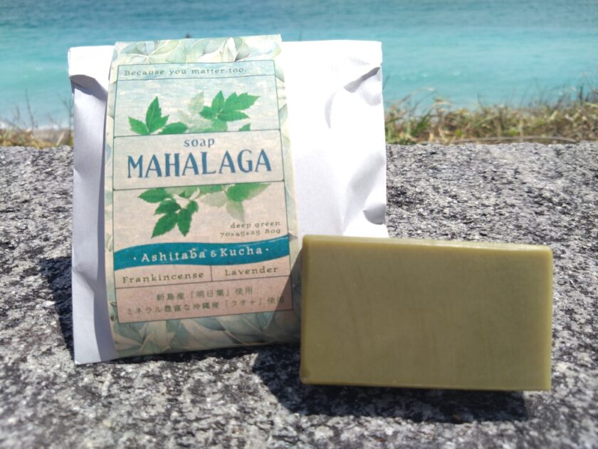 今回ご紹介するのは、オリジナル石鹸ブランド「MAHALAGA」のパッケージデザインです。MAHALはタガログ語で「大切」という意味。ブランド名には、自分自身や日々の暮らしを大切にしてほしいという想いが込められています。その象徴である石鹸には、新島産の明日葉と沖縄のミネラル豊富なクチャが配合され、香りはラベンダーとフランキンセンスをブレンド。深い緑色の石鹸が、自然の力強さとやさしさを同時に感じさせてくれる特別なプロダクトです。