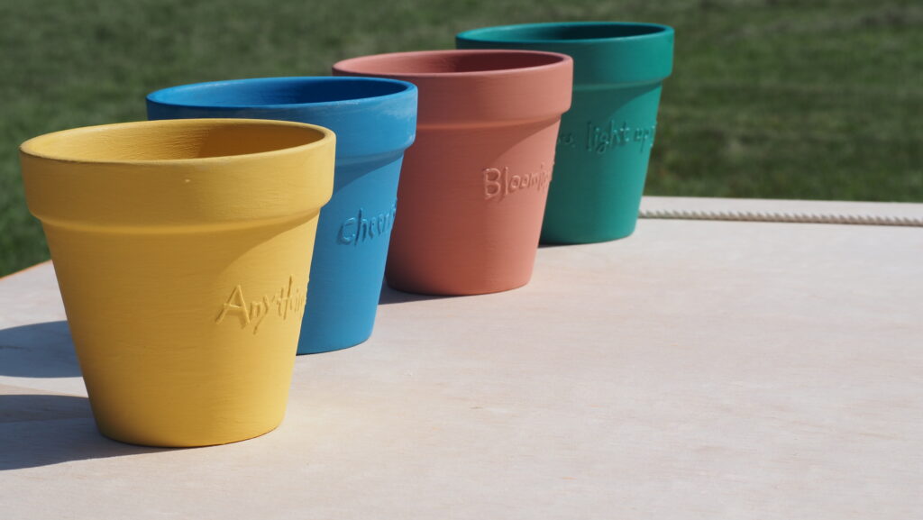 存在感も十分な鉢の表面には鉢と同じ色で人生の応援メッセージを書いています。