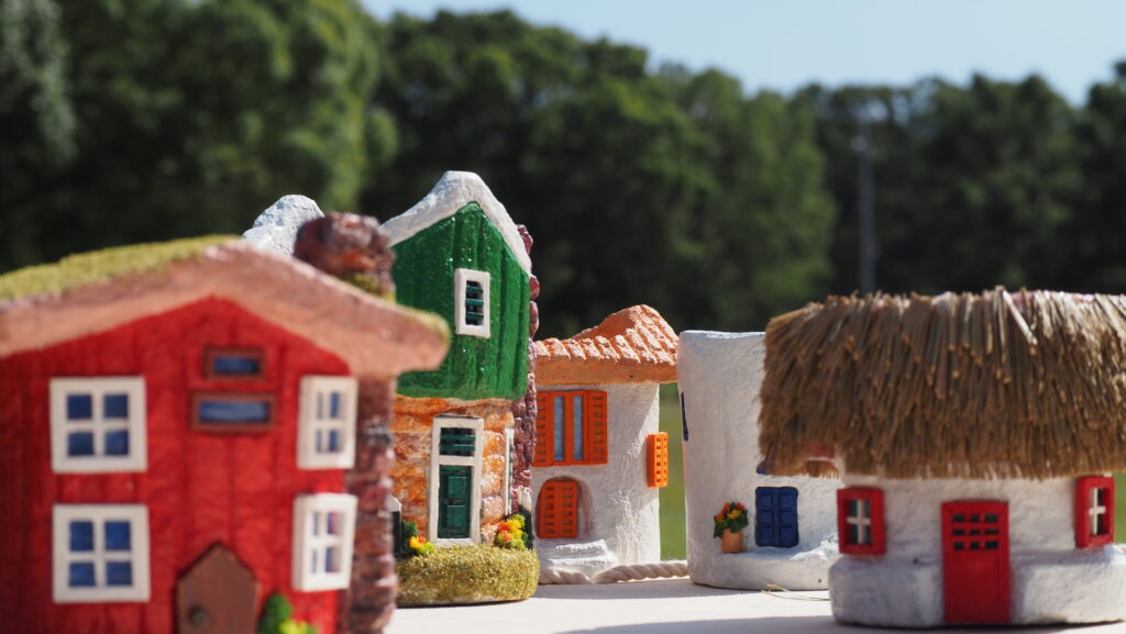 スペイン、ギリシャ、ノルウェー、アイルランド、オランダのお家をモチーフに可愛らしくなるよう制作しました。